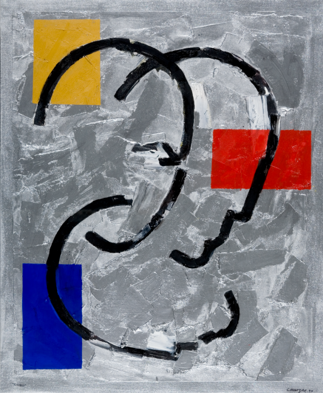 “Sin título” 1993, es otra obra de Rafael Canogar que viste uno de nuestros vinos: ENATE Reserva Especial 2005. Tres esquemáticas cabezas, definidas por sus siluetas, son el esquema que utiliza el artista como estructura, como pretexto, para experimentar y aproximarse a la esencia de la pintura.