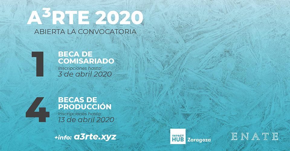 A3RTE parte de la construcción de una línea curatorial novedosa, creada mediante una beca de 4.000 € para un joven comisario, cuyo papel será elegir a cuatro artistas, junto a Bodega ENATE e Impact Hub Zaragoza que, a su vez, recibirán una beca de 1.000 € cada uno para el desarrollo de una propuesta artística. Además, el curador construirá una línea conceptual que integre las exposiciones de los artistas seleccionados y dará identidad a todo el proceso productivo. Las fechas para inscribirse al programa se dividirán en dos fases: la primera, hasta el 3 de abril, para los curadores, y la segunda, hasta el 13 de abril, para los profesionales del arte emergentes. Ambas inscripciones se realizarán a través de la web de A3RTE.
