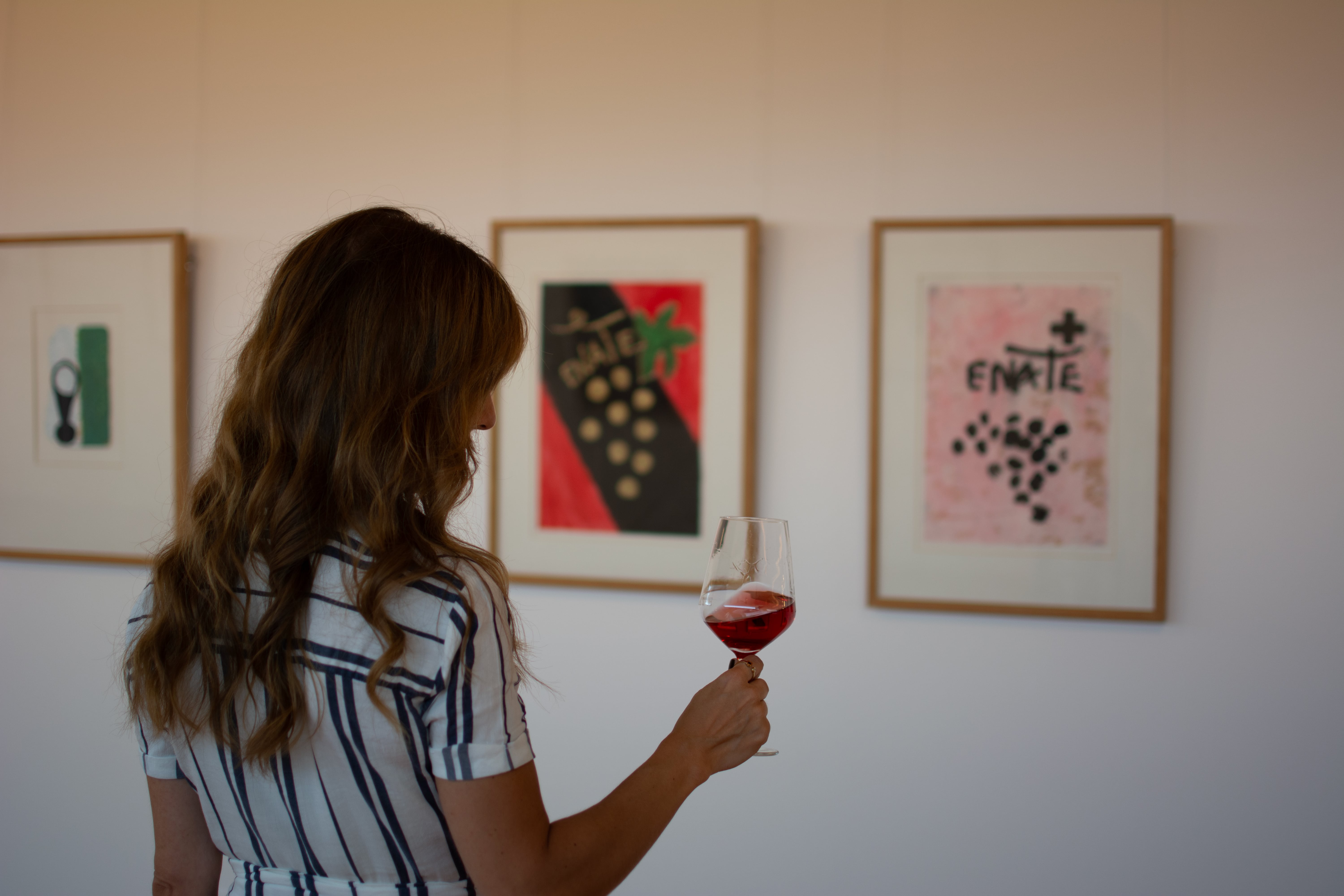 Una de las experiencias más representativas de la bodega es El vino del arte , una visita guiada que permite recorrer los distintos espacios de ENATE mientras descubrimos el proceso de elaboración de nuestros vinos, con el arte contemporáneo como punto de partida y cierre de cada experiencia. Y es que todo en ENATE gira en torno al arte. La bodega alberga una importante colección de arte contemporáneo, con obras de artistas nacionales e internacionales que forman parte de la identidad de la casa, como Chillida, Tàpies, Saura o Canogar. Cada vino de ENATE está asociado a un artista cuya obra aparece en la etiqueta, y cuyo original puede contemplarse en nuestra sala de arte. Así, el visitante descubre cómo el arte y el vino conviven en cada espacio, desde la arquitectura del edificio hasta las esculturas que acompañan el recorrido.
