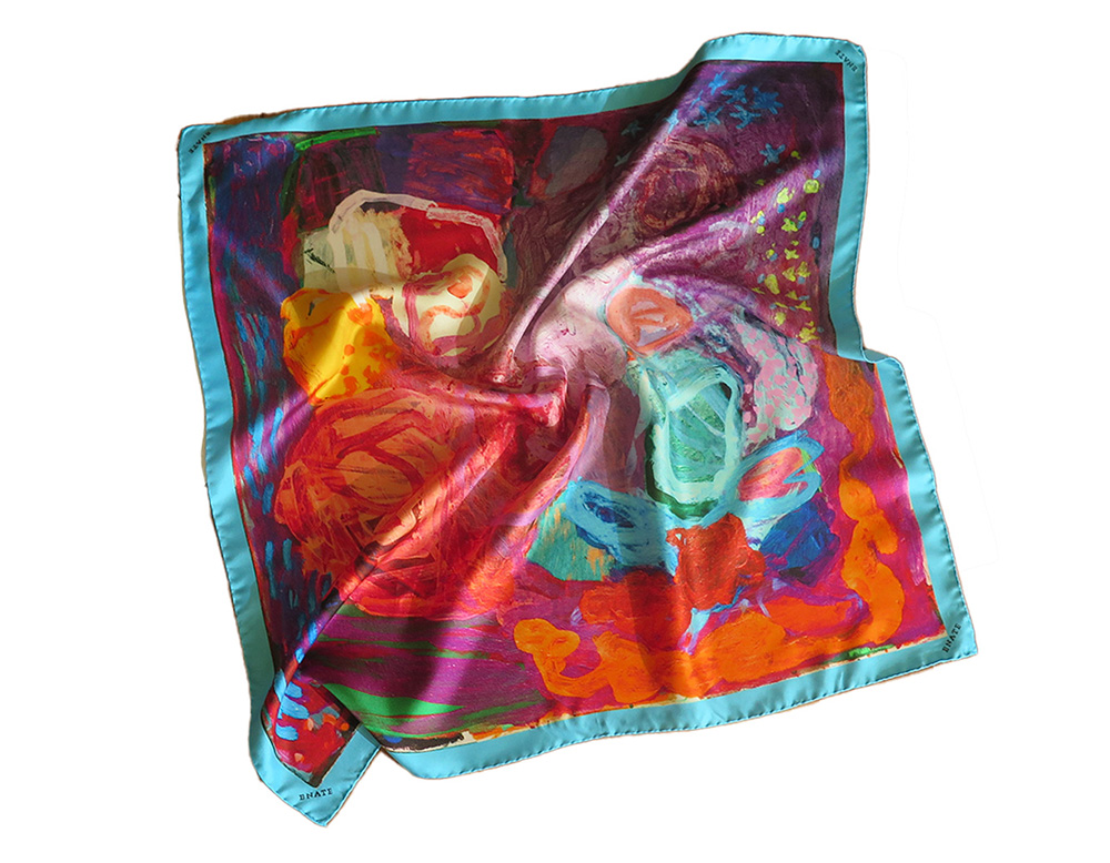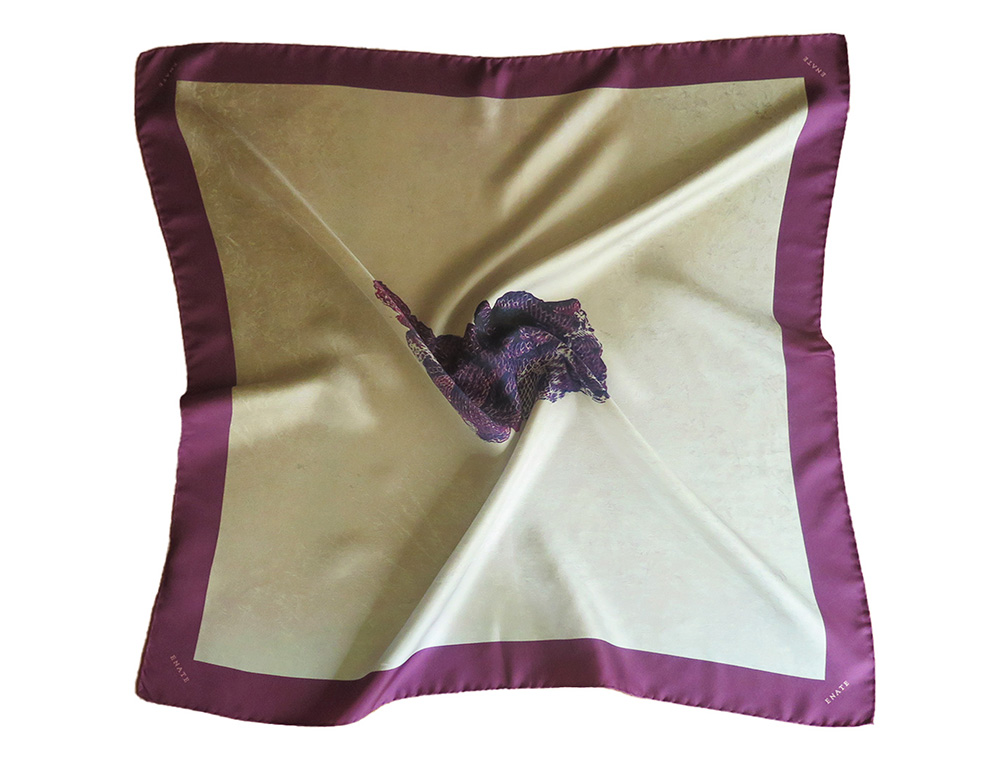 Offrez un cadeau artistique avec cette écharpe carrée en soie 100% naturelle imprimée de l’œuvre originale ‘Enredada’ de l’artiste Charo Carrera, lauréate de la bourse ENATE 2020.